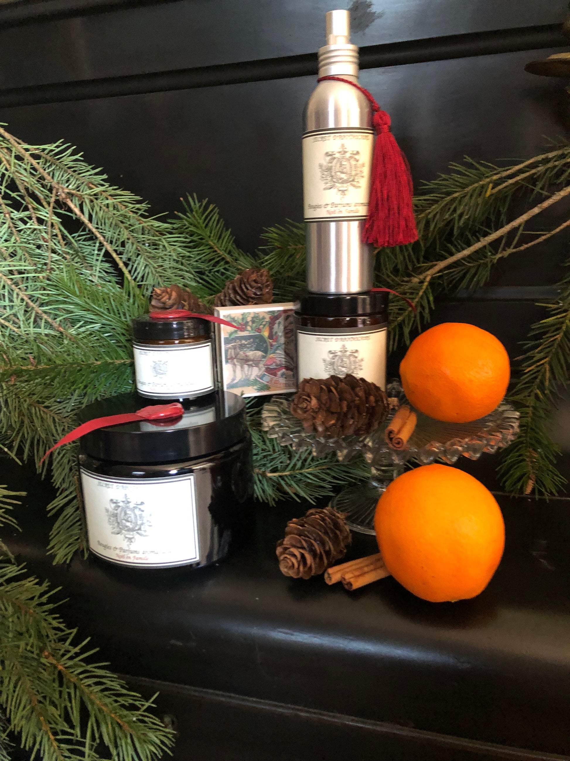 L’apothicaire écrivit dans son journal de voyage au Sri Lanka à propos de la cannelle et de l’orange : « J’ai ramené du Sri Lanka ces écorces brunes d’orange. Il en est sorti ces fragrances qui ont rappelé mon enfance avec les oranges de Noël et les gâteaux à la cannelle, déguisés près de notre cheminée. Ces notes, je les ai conservées dans ma cire végétale pour en fabriquer une bougie que j’allume pour rappeler mes Noëls en famille d’apothicaire parfumeur afin de partager ce moment. »